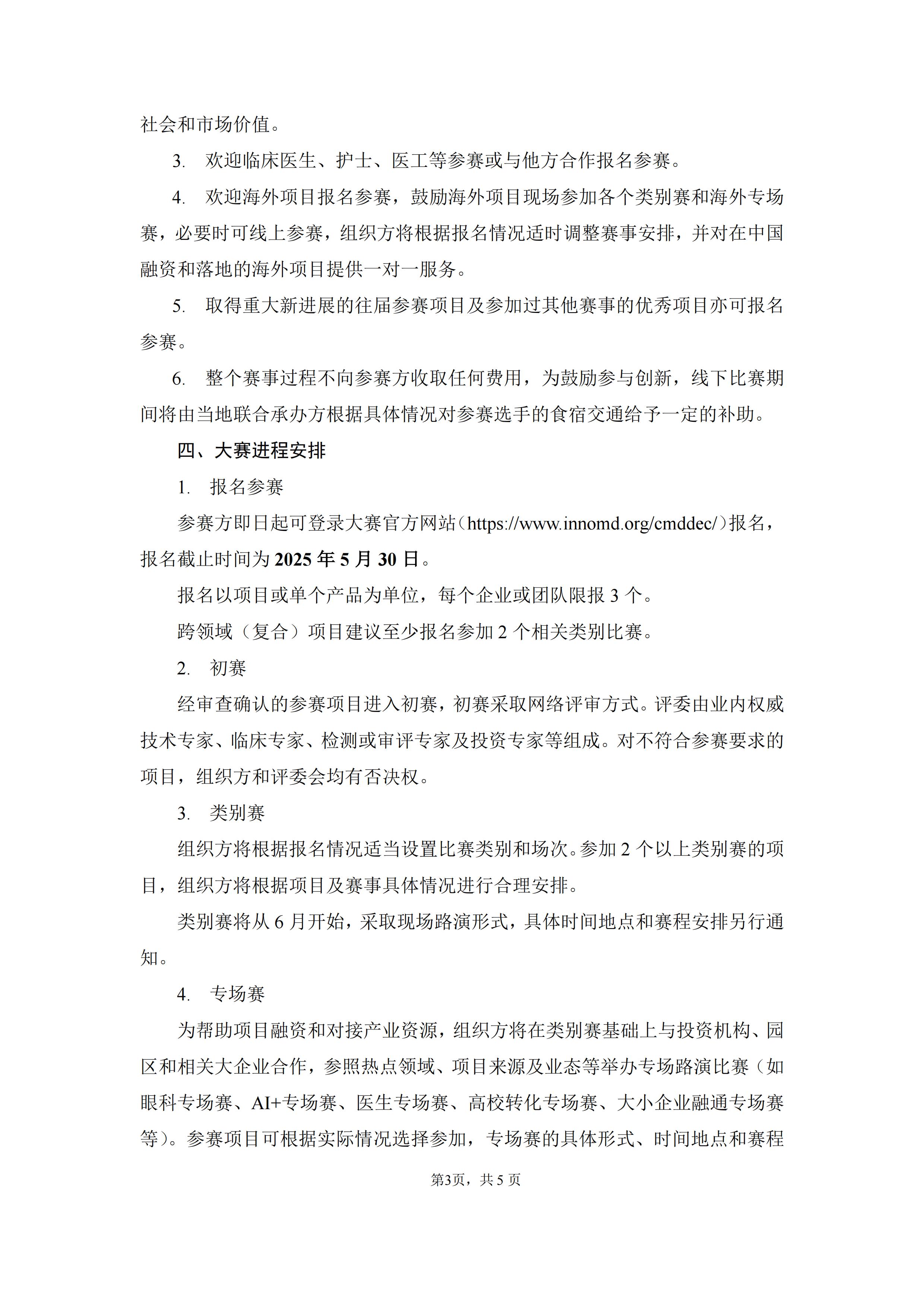 参赛方即日起可登录大赛官方网站(医疗器械创新网网://sdcwpt.com/cmddec/)报名,报名截止时间为2025年5月30日。